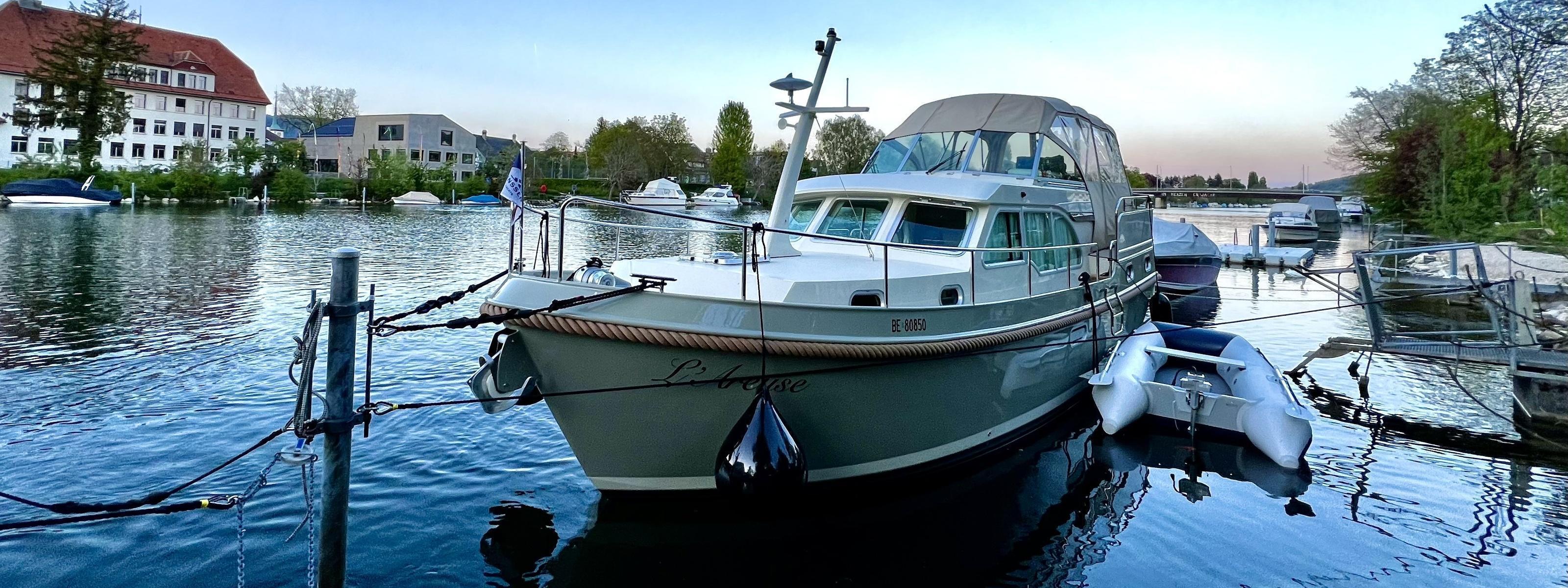"La Barrique" 40 SL AC am Steg Murtenbad Heute Morgen sind wir mit "unserem Schiff" La Barrique losgefahren. 🚢 Auf dem Weg nach Murten, wo wir meine Eltern, Jos und Rina Linssen, treffen würden. Eine schöne Fahrt auf den beiden Kanälen bis zum Murtensee. 🇨🇭 Bei einer Temperatur von etwa 16 Grad und Sonnenschein war es an Bord angenehm. ☀️