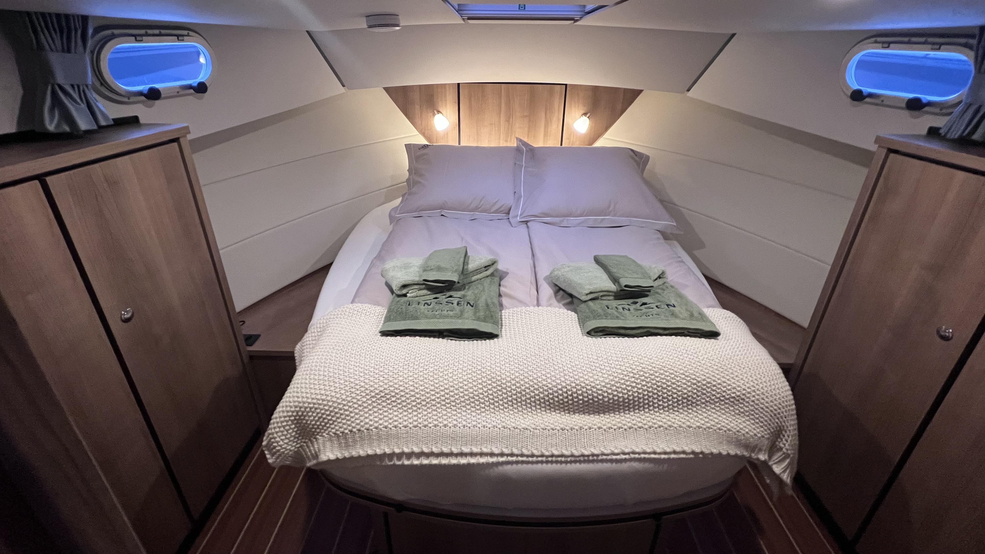 On board you will find all the essentials: bed linen, towels, hoover, pots and pans, coffee maker, glasses, free wi-fi and soap for hands and body.