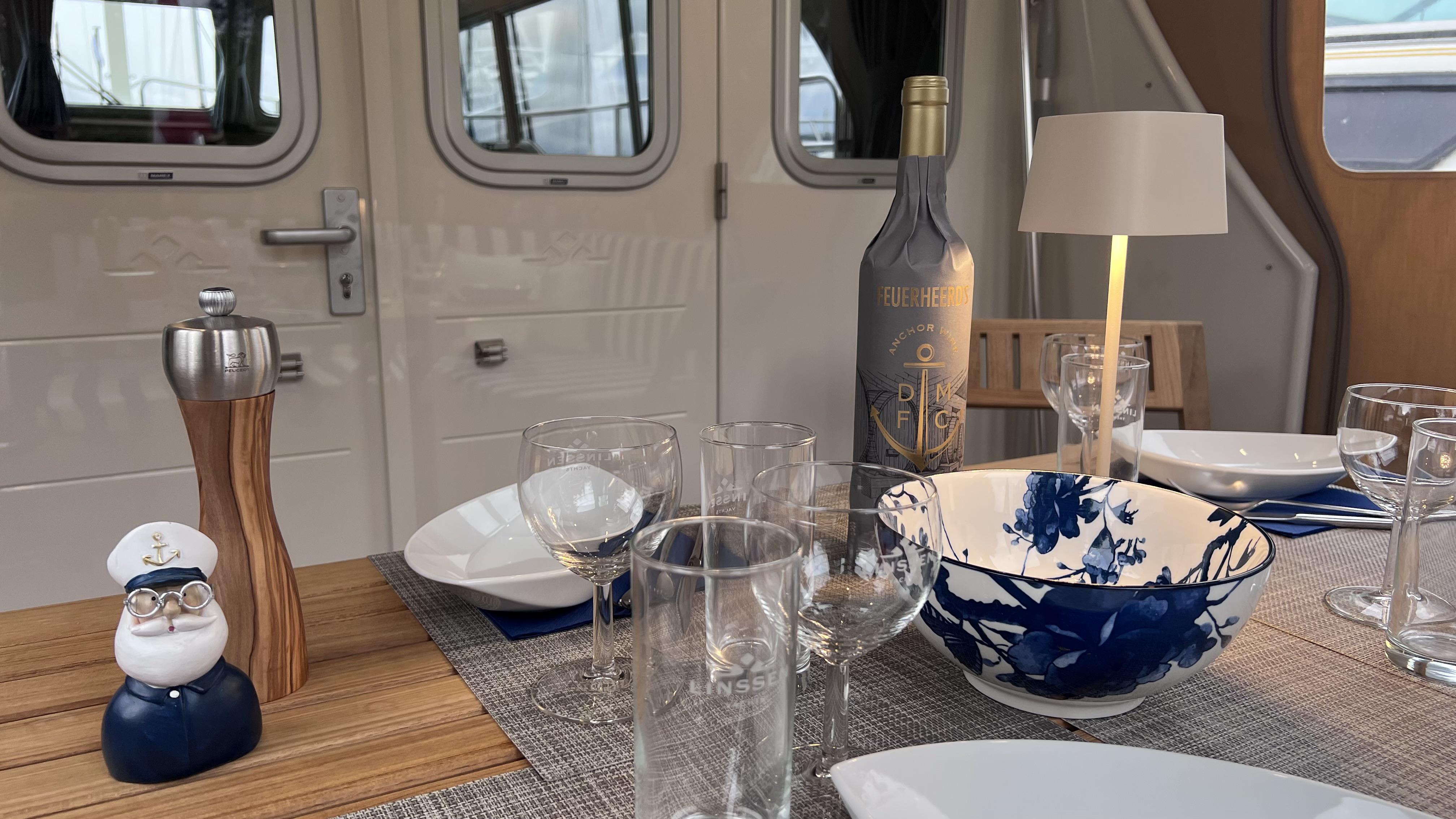 Set the table! That's no problem. We'll be happy to provide everything if you want to spend the first night after the long trip stress-free and cosy in our home port. For an extra charge, we will preheat the ship for you and put culinary delicacies in the fridge that you can just warm up in the oven after your arrival. Please book at least 5 days in advance. VIP Gourmet Package For the hunger after your arrival: